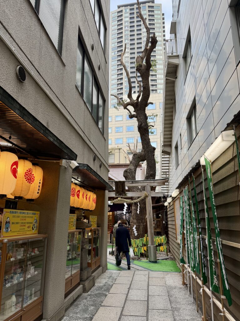 左は神社の社務所、右は隣のビルですが、とても狭いです。